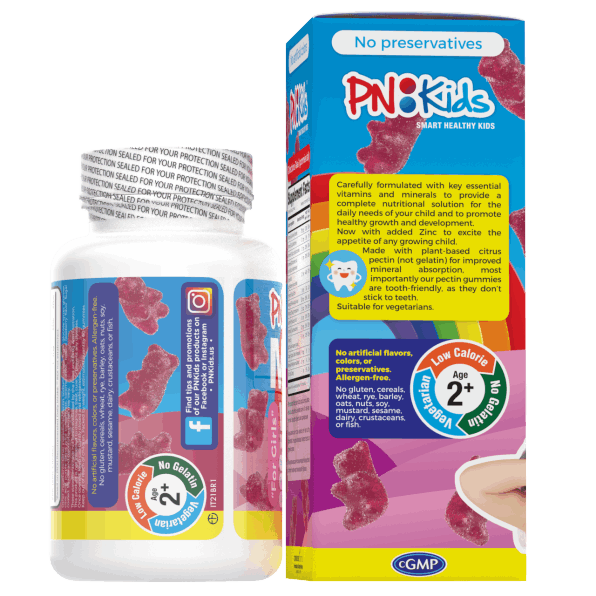 PNKids Multivitamin + Minerals for Girls, provide your kids with key essential nutrients that they need during their growing years. A special blend that contains citrus pectin for better vitamin absorption. Plus, it comes in great tasting fruit flavors and fun shapes that keeps your kids coming back for more!